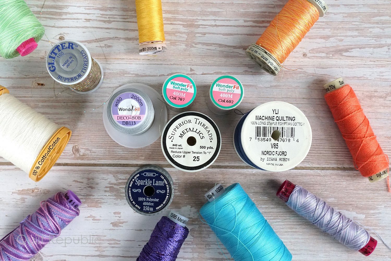 แต่ถ้าเราต้องการแอพพลิเคแบบเนียนเรียบร้อยเหมือนงานมือ  เราควรพิจารณาด้ายที่มีความบางมาก  หรือถ้าเราแอพพลิเคแบบโชว์ลวดลาย ด้ายที่มีเส้นใหญ่ก็เป็นตัวเลือกที่น่าสนใจ